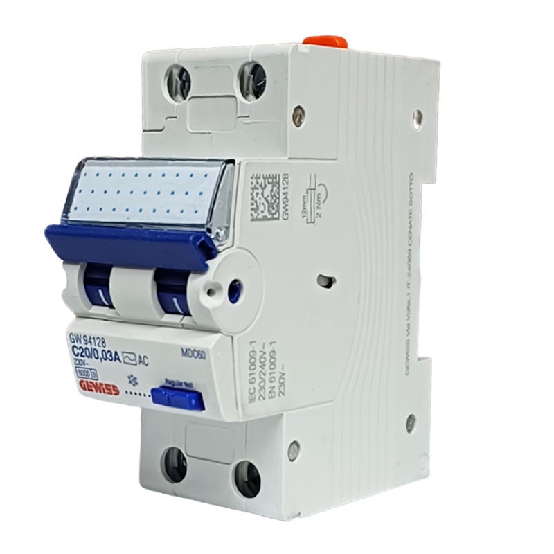 Gewiss 20A 2P 30MA AC 6KA 2 Module Fehlerstrom-Schutzschalter mit den folgenden Eigenschaften: