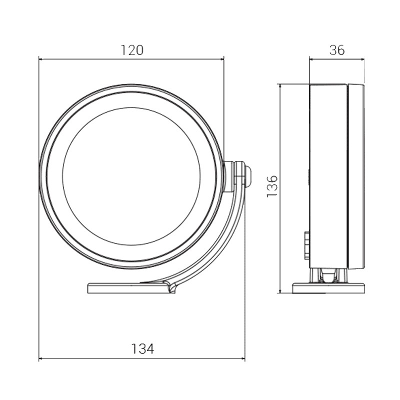- Abmessungen (siehe Abbildung) Durchmesser Ø 120 mm - Dicke 36 mm - Höhe 136 mm