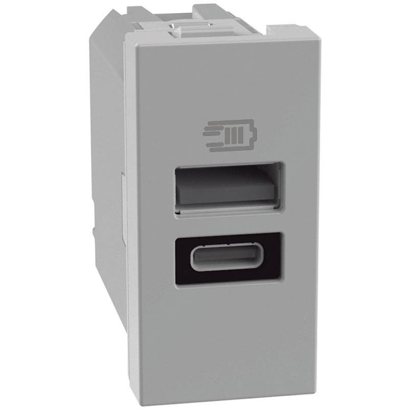Bticino MatixGO 15W USB-Ladegerät mit 1 Typ-A und Typ-C-Anschluss grau JG4191AC