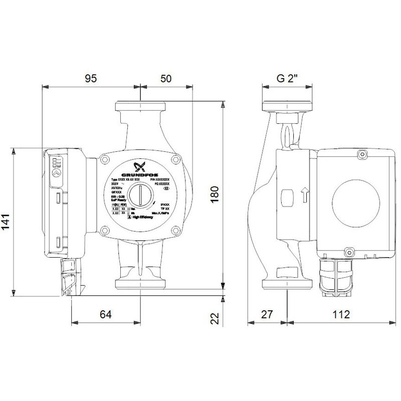 Grundfos UPS2 32-80 180 Umwälzpumpen mit Nassläufer für Heizung für Hausheizungsanlagen, G 2" Gewindeanschlüsse, max. Förderhöhe 8 m: