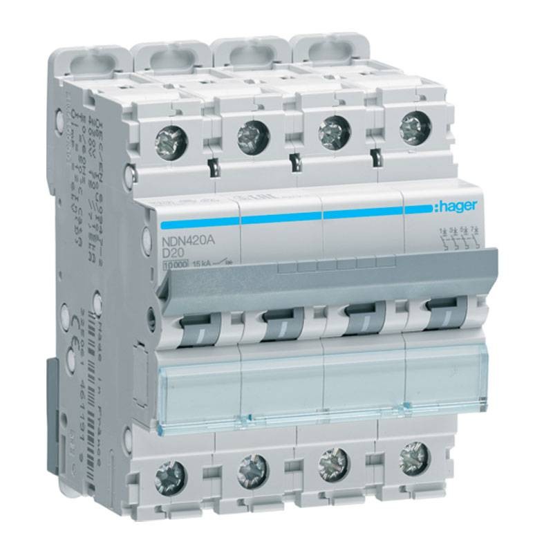 Hager Leitungsschutzschalter 4P 20A 10KA Kurve D 4M NDN420A