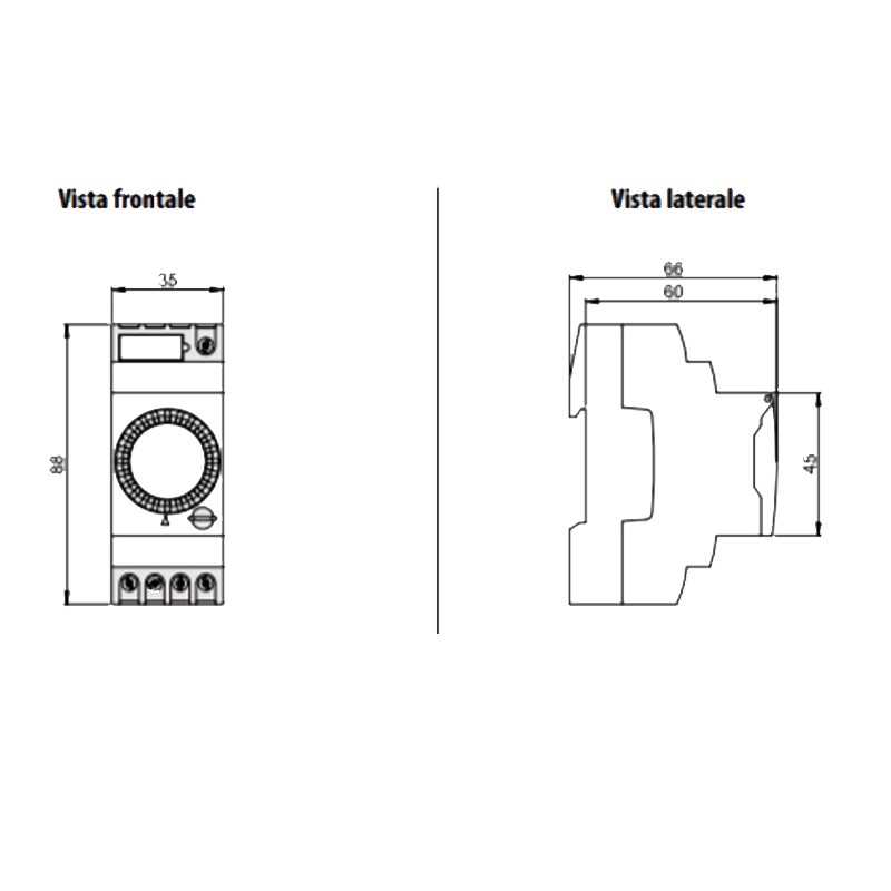 Elektromechanische Zeitschalter in 2 DIN-Modulen mit Drehschalter und Tagesprogrammierung.