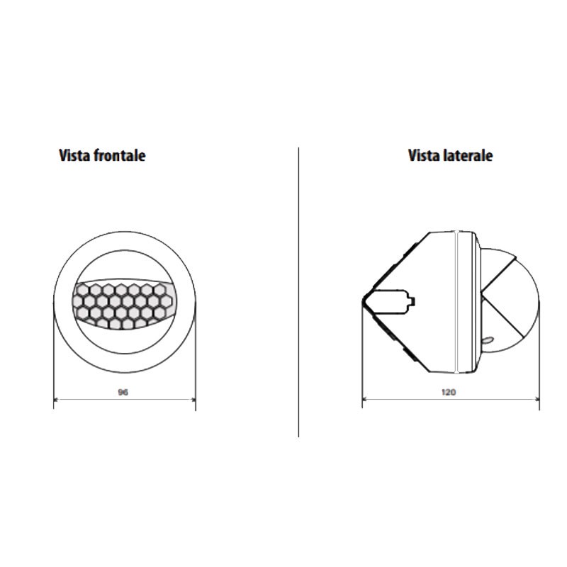 Vemer Sensor Eck-Bewegungsmelder, Wandmontage, Innen- und Außeneckmontage, mit Infrarot-Technologie. Der Sensorkopf kann geneigt werden, um das gewünschte Erfassungsfeld abzudecken. Empfindlichkeit und Eingriffsverzögerung können mit einem Trimmer eingestellt werden.