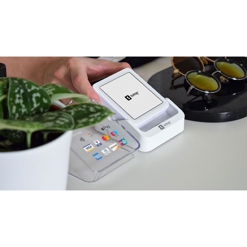 Mit dem SumUp-Bezahlterminal können Sie einfach und in einer sicheren Umgebung kassieren, ohne Ihr Mobiltelefon zu benutzen. Das intelligente und praktische Gerät ist ein eigenständiger Bankkartenleser, mit dem Sie alle Bankkarten akzeptieren können.
