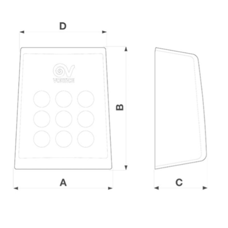 - Wandflansch mit integriertem Warmluftauslassgitter aus Kunststoff (PP)
