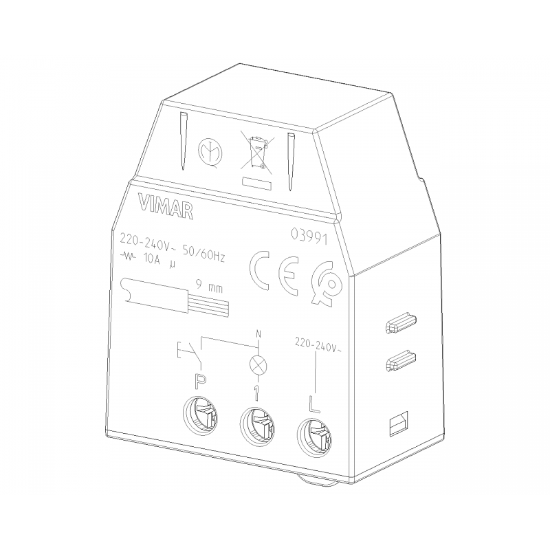 Vimar magnetischer Quid sequentieller Impuls EIN/AUS-Relaisbaustein, 1 Eingang pro Schließer-Taster, 1 Relaisausgang Schließer 10 A 220-240 V~ 50/60 Hz, Unterputzmontage (Hintereinbau, Shunt oder unter Abdeckung).