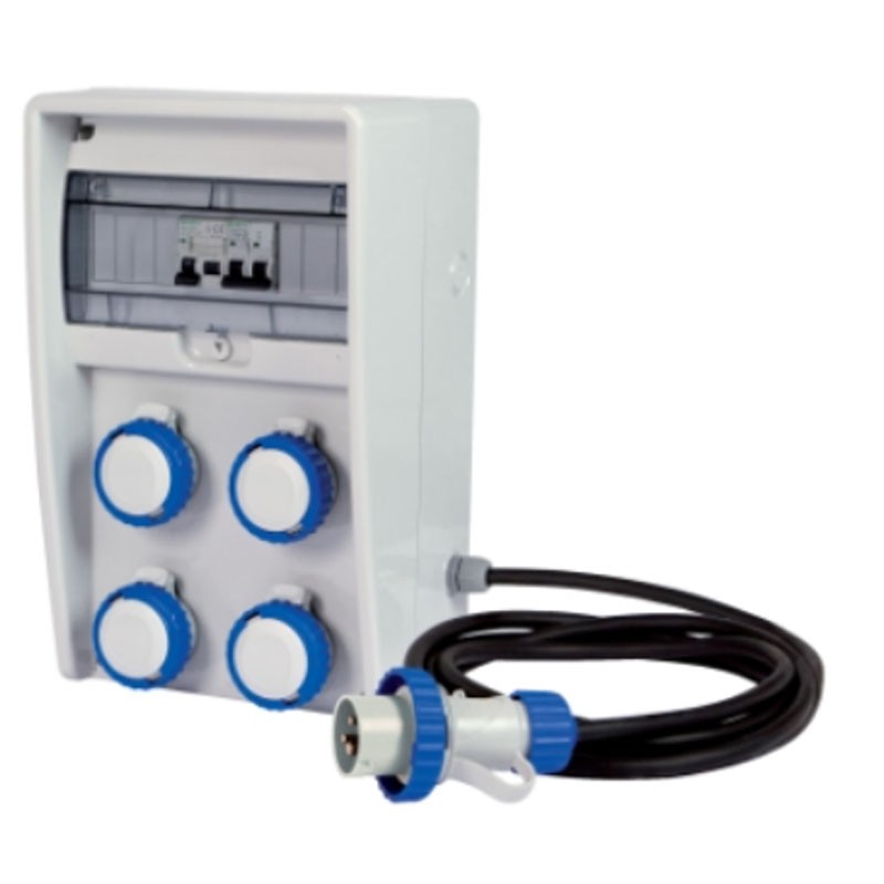 - Bestehend aus: 1 x 2P+E 16A 200-250V 6h IP67 Stecker - 4 x 2P+E 16A 200-250V 6h IP67 Steckdosen