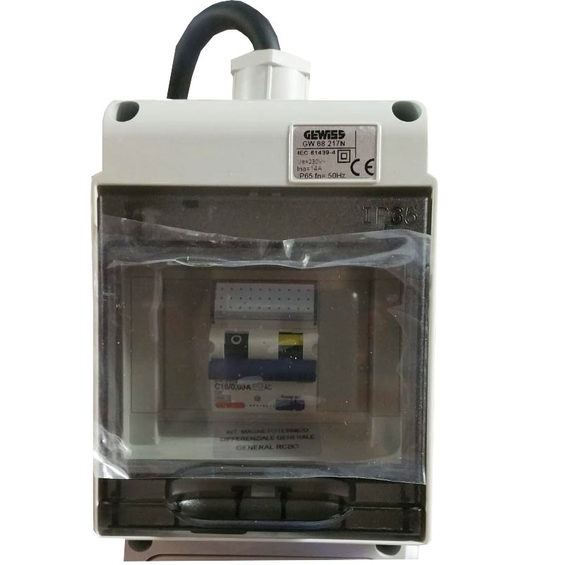 Gewiss verdrahtete Schalttafel, 3 Module mit 3 Flanschen. Mit Kabel und Stecker, tragbarer und mobiler Artikel.