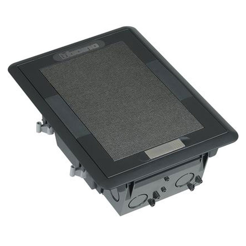 Bticino verdeckter Revolver, Kapazität 8/10 Module. Deckel mit anpassbarem Fach und ergonomischem Griff. Abmessungen: Höhe 92,5 mm - Breite 185 mm - Tiefe 270 mm.