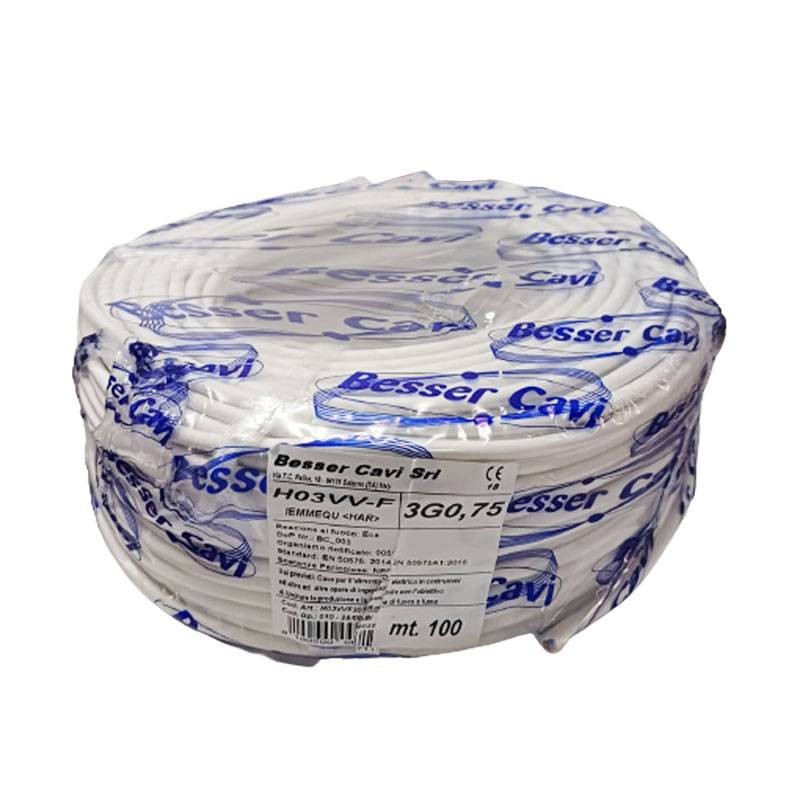 Flexible gummierte Leitung H03VV-F 3x0,75mmq weiß Spule 100 Meter
