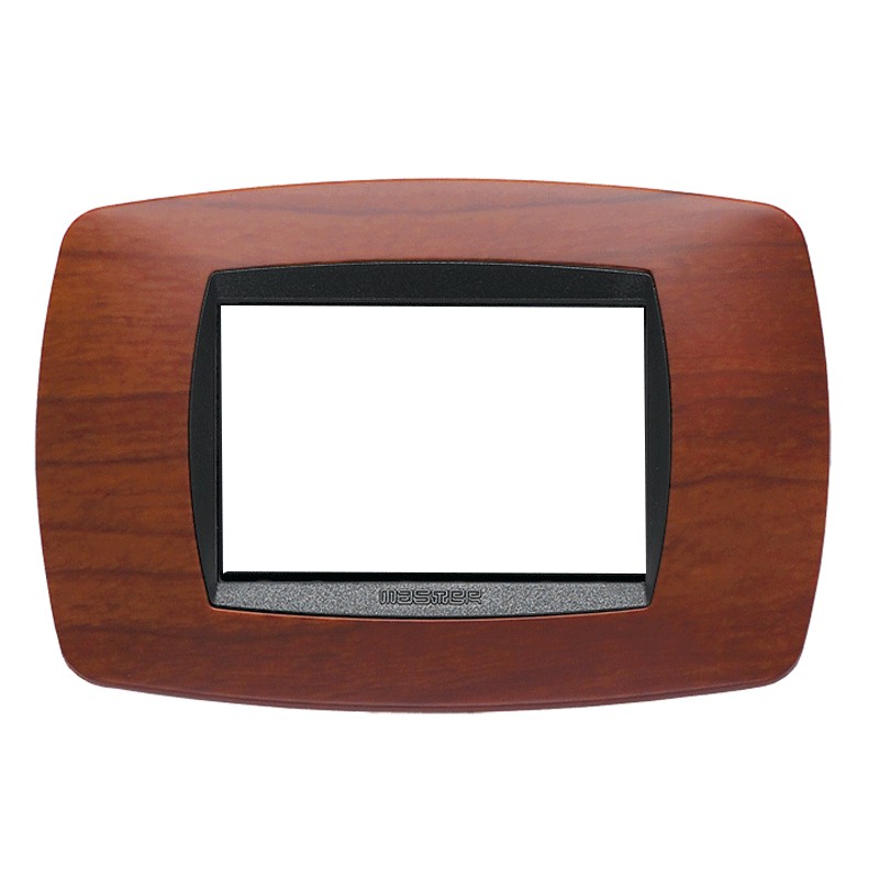 Master Modo Abdeckrahmen 3 Module kirschbaumfarben. Der Abdeckrahmen wird auf die Rahmen 38003, 38003-F montiert, oder durch den Adapter 39033 ist der Abdeckrahmen kompatibel mit den Rahmen LN4703 und L4703 der Bticino Living und LivingLight Serie.