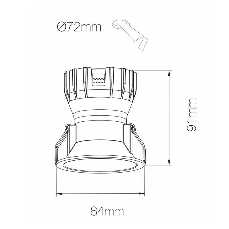 - Abmessungen: Höhe 91 mm, Strahlerdurchmesser 84 mm