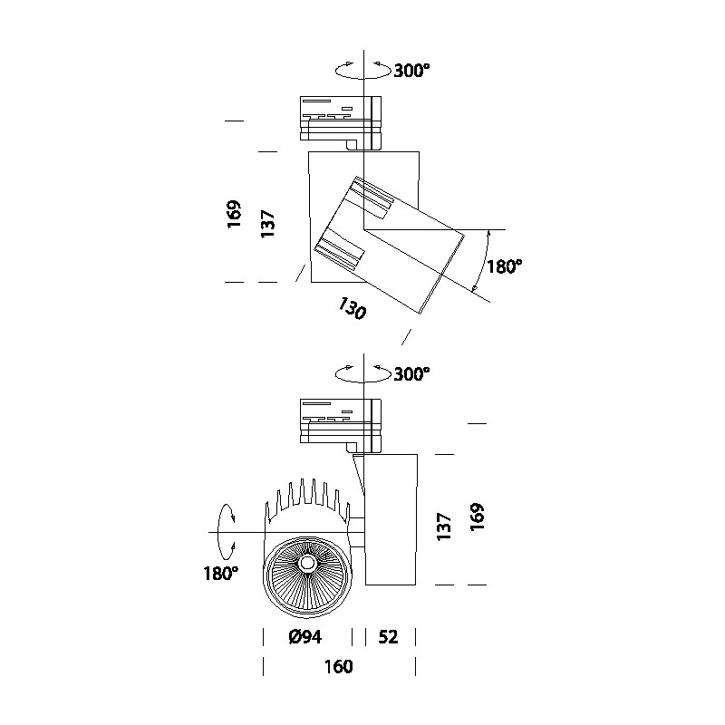 - Ausstattung: Verstellbar auf eigener vertikaler Achse mit 300° Drehung