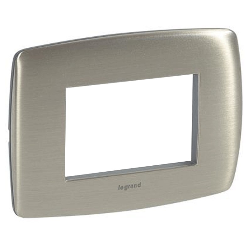 Runde Platte Legrand Vela 3 Plätze (Module), Farbe Aluminium satiniert. Zu verwenden bei Support 072843.
