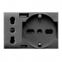 Zweipolige Schukosteckdose (UNIVERSAL) plus P17/11 italienische Standardsteckdose, USB-Buchsen Typ A und C 5V 3A Ausgang. Domus Serie grau, 2P+E 10/16A 250V~, mit abgeschirmten Alveolen, nicht beleuchtet - 3 Module.