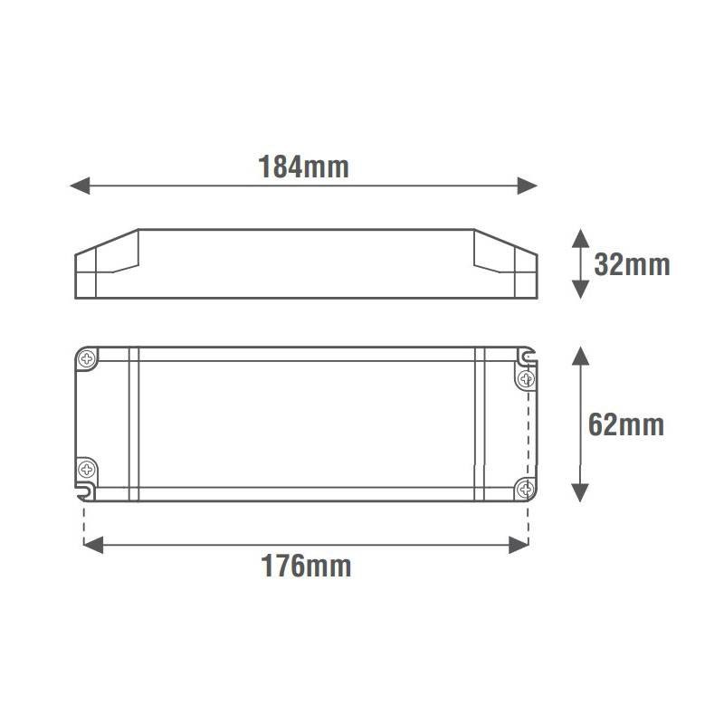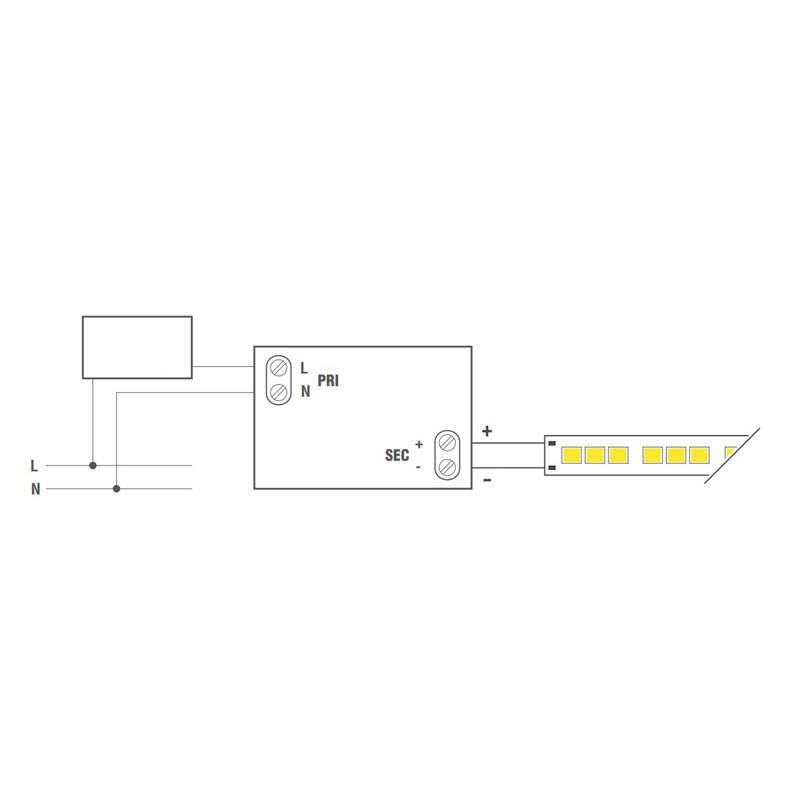 Stromversorgung für dimmbare, phasengeschnittene LEF-LED-Streifen mit konstanter Spannung (CV) und den folgenden Eigenschaften: