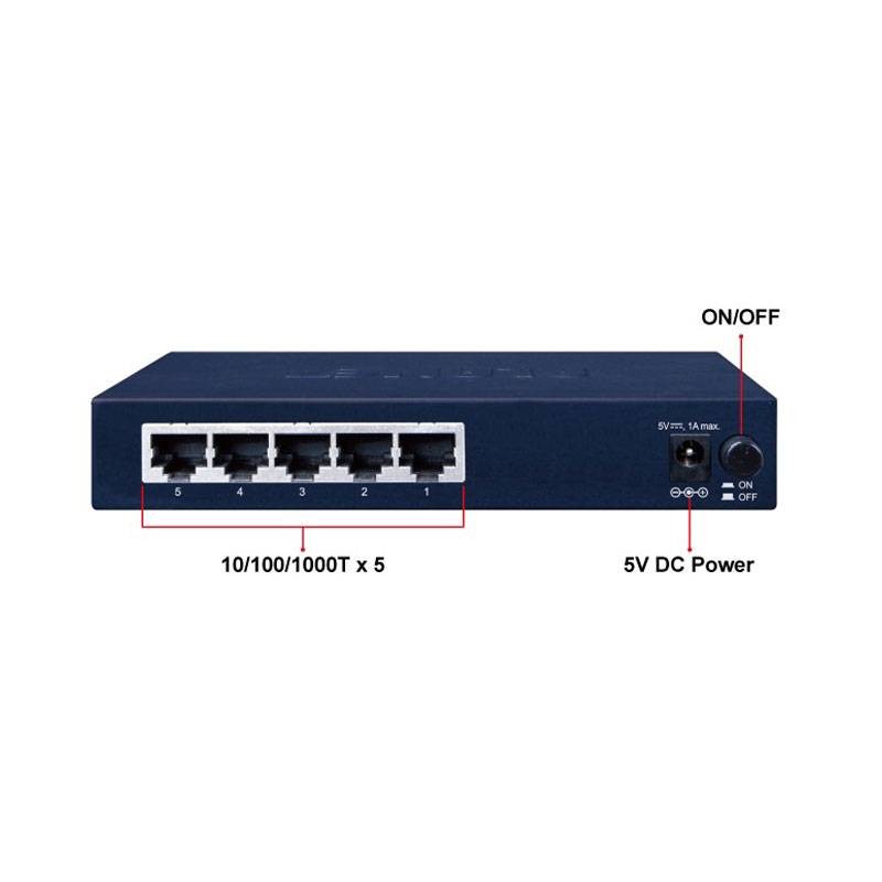 Der PLANET GSD-503 Green Networking Switch wurde speziell entwickelt, um dem aktuellen weltweiten Trend zur Energieeinsparung gerecht zu werden. Der GSD-503, ein 5-Port-Gigabit-Ethernet-Switch, bietet energiesparende Vorteile und Gigabit-Kabelgeschwindigkeit für Heim-, SOHO- und Unternehmensnetzwerke.