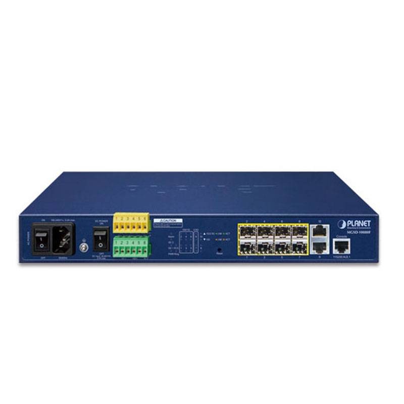 Der PLANET MGSD-10080F Managed Metro Ethernet Switch ist mit fortschrittlichen Verwaltungsfunktionen ausgestattet und bietet 6 Dual-Speed 100/1000 Mbps SFP Glasfaser-Ports, 2 x 100/1000/2500 Mbit/s SFP-Ports und 2 x 10/100/1000 Mbit/s TP-Ports in einem robusten Gehäuse PLANET MGSD-10080F Managed Metro Ethernet Switch ist mit fortschrittlichen Verwaltungsfunktionen ausgestattet und bietet 6 x 100/1000 Mbit/s Dual-Speed SFP-Glasfaser-Ports, 2 x 100/1000/2500 Mbit/s SFP-Ports und 2 x 10/100/1000 Mbit/s TP-Ports in einem robusten Gehäuse. Er bietet eine nicht blockierende Switch-Struktur und einen Wire-Speed-Durchsatz von bis zu 26 Gbit/s im Temperaturbereich von -10 bis 60 Grad Celsius ohne Paketverluste und CRC-Fehler, was die Aufrüstung von Unternehmens-LANs zur Erfüllung steigender Bandbreitenanforderungen erheblich vereinfacht.