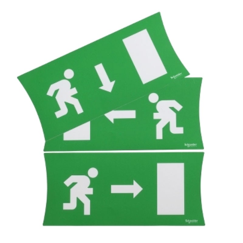 Kit mit 3 Piktogrammen (einseitige Symbolik rechts, links, unten) für Schneider RILUX Notleuchten 8W. Höhe 88 mm, Breite 316 mm.