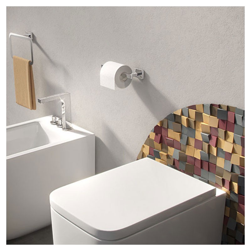 Die Serie Atena umfasst auch Seifenschalen, Seifenspender, Handtuchhalter und WC-Bürstenhalter, Zahnputzbecher.