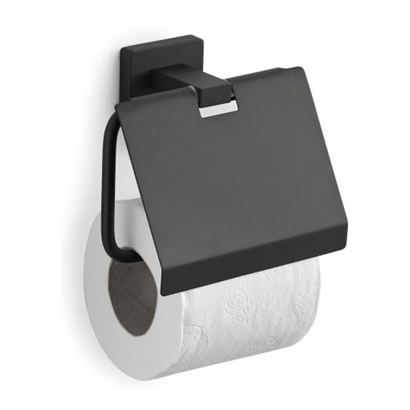 Gedy Atena Toilettenpapierhalter Wandmontage mit Deckel schwarzmatt 4425-14