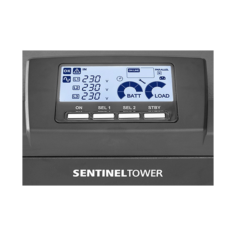 Darüber hinaus erhöhen die Eingangs- und Ausgangsfilter die Immunität der Last gegen Netzstörungen und Blitzeinschläge erheblich. In Bezug auf Technologie und Leistung ist Sentinel Tower eine der besten USVs auf dem heutigen Markt: dreistufiger Wechselrichter zur Erzielung eines Wirkungsgrads von 95 %, Ausgangsleistungsfaktor 1 zur Steigerung der System- und Geräteeffizienz und zur Verringerung der Verluste im Stromnetz.