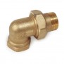 Dreiteiliges 90°-Winkelstück von Giacomini, nicht verchromt, mit Innen- und Außengewindeanschluss. Abmessungen G 3/4 "F x G 3/4 "M.