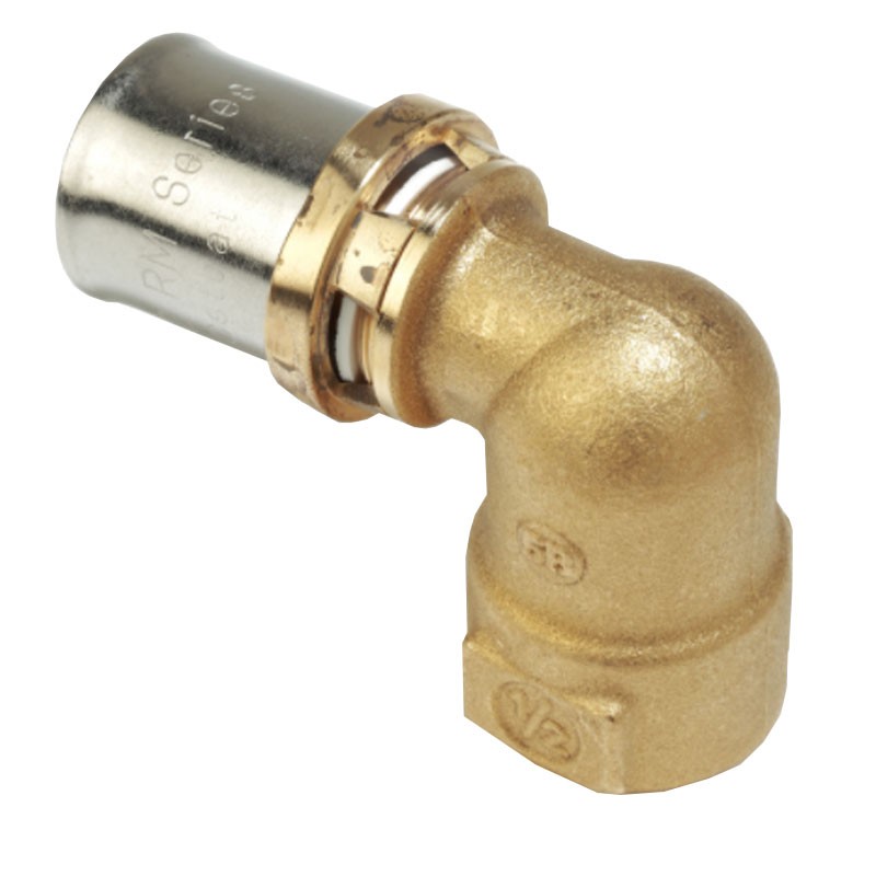 Giacomini 90° gebogene Pressfittings mit Innengewinde und mehreren Kavitäten. Abmessungen 1/2" x (20 x 2) kompakt.