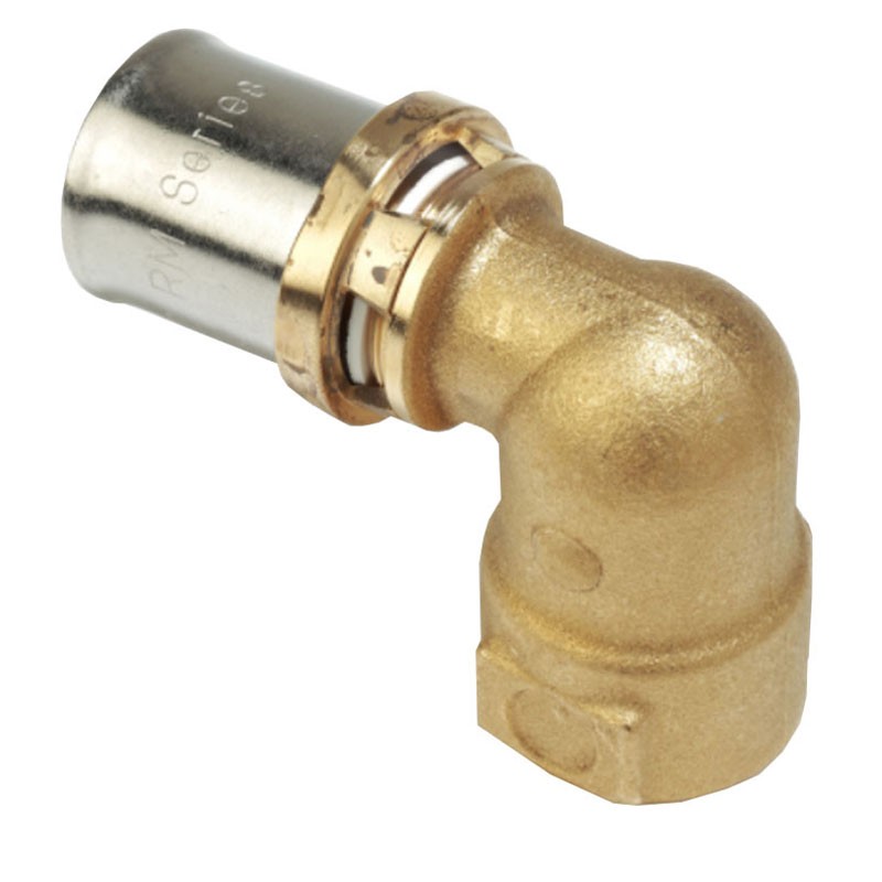 Giacomini 90° gebogene Pressfittings mit Innengewinde und mehreren Kavitäten. Abmessungen 3/4" x (20 x 2).