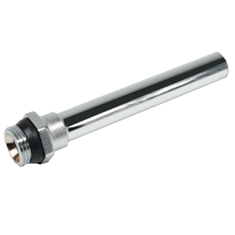 Giacomini Kupferrohr, Chrom poliert, mit 1/2 «M Anschluss. Selbstdichtend. Länge 120 mm.