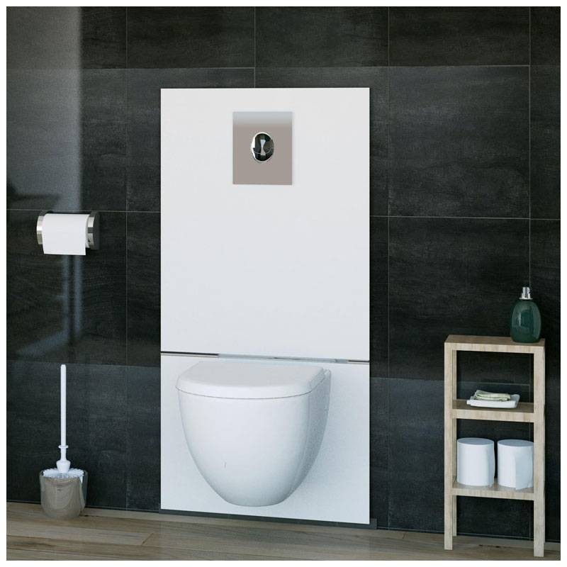 Sie wird direkt hinter der wandhängenden Toilette installiert und ermöglicht eine ästhetische und raffinierte Installation dank der Glasabdeckung mit modernem Design.