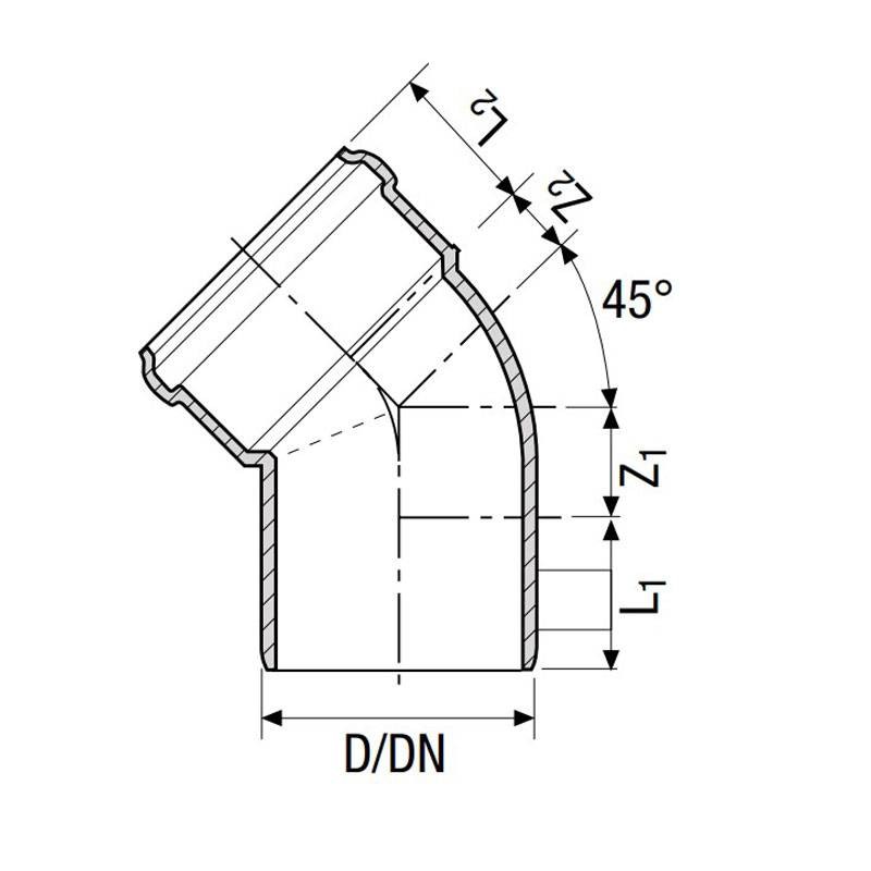 Valsir Silere 45-Grad-Bogen, steckbares Abflussrohr mit den folgenden Spezifikationen: