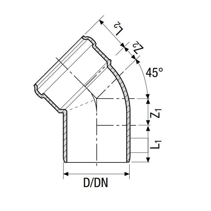 Valsir 45-Grad-Bogen, Steckbares Abwasserrohr Silere mit den folgenden Spezifikationen: