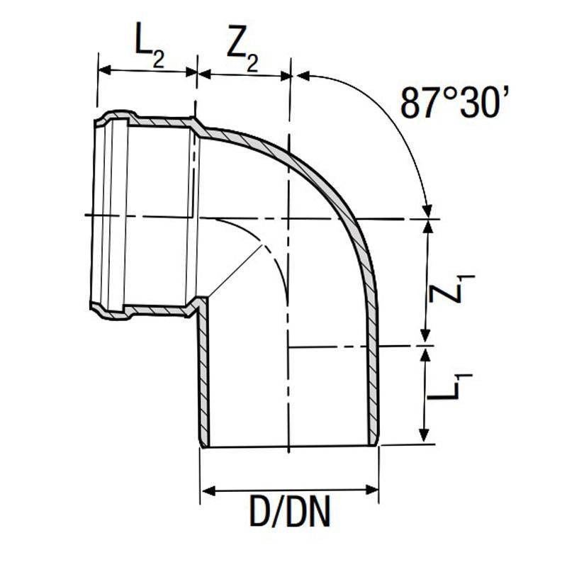 Steckbares Abwasserrohr Bogen 87/30' Grad Valsir Gamma Silere mit den folgenden Eigenschaften:
