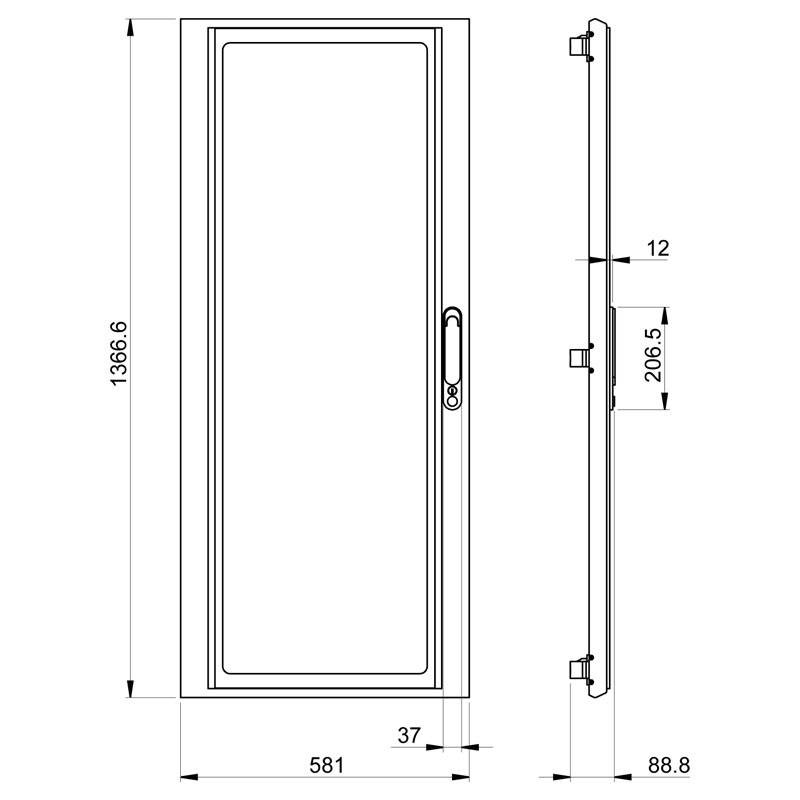 Transparente Tür für Schneider PrismaSet G Tafeln W600 27M IP30 LVS08232
