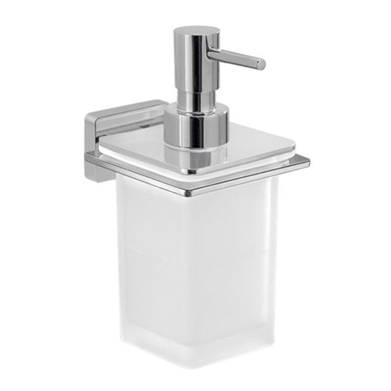 Gedy Atena Wandseifenspender aus Stahl und Cromall, verchromtes Modell, mit Milchglasbehälter, Maße 8,1x11,1x16,4cm.