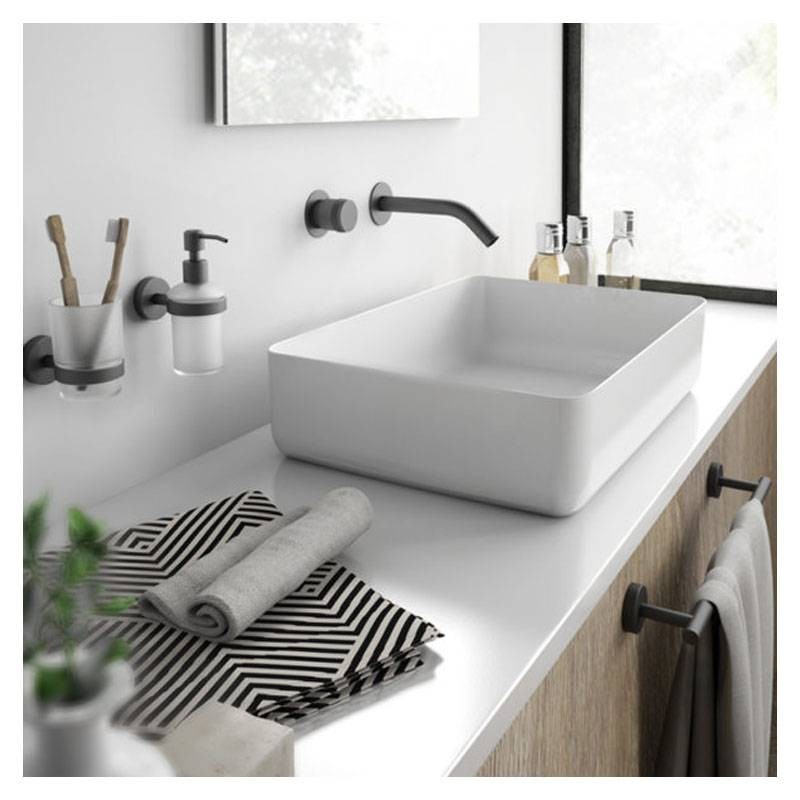 Die Serie Eros umfasst auch einen Seifenspender, einen WC-Bürstenhalter, einen Zahnputzbecher und einen Toilettenpapierhalter.