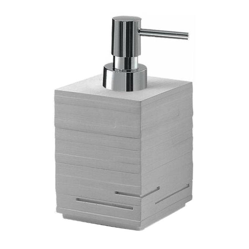 Gedy Quadrotto Seifenspender, Farbe grau, aus Harz, mit verchromtem Kunststoffspender, Maße 8,2x8,2x16cm.
