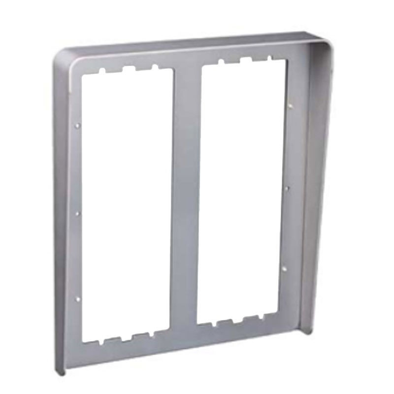 Urmet 2-reihiges Aufputzgehäuse für 6 Module, aus poliertem Aluminium. Abmessungen (H x B x T) 331 x 287 x 22 mm, maximale Tiefe 47 mm.