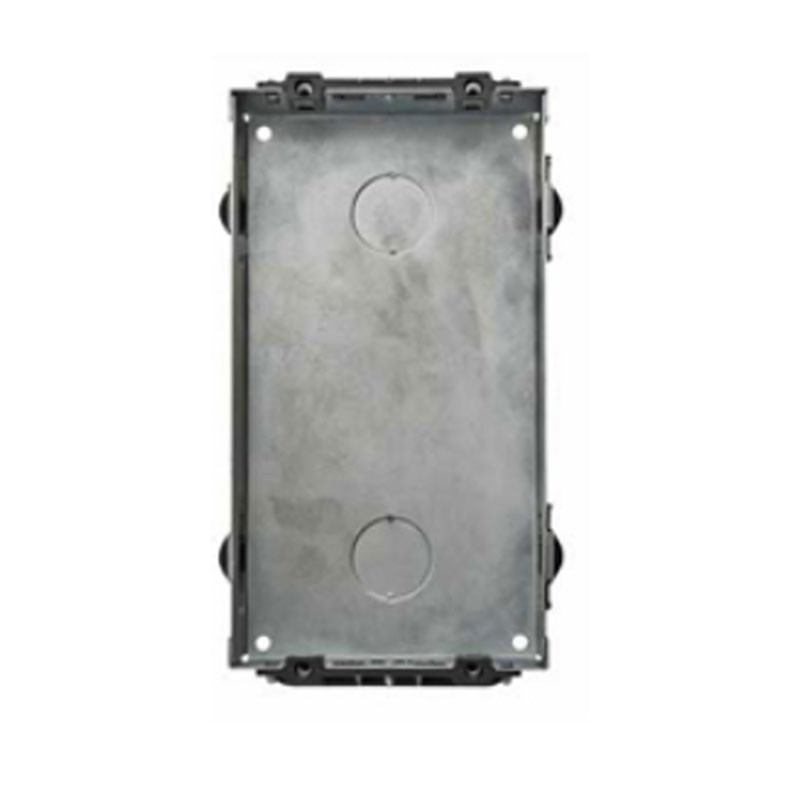Unterputzdose mit 2 Modulen für das Bedienfeld Urmet Sinthesi Steel. Die Schachtel ist aus Eisen gefertigt. Abmessungen (H x B x T): 204 x 118 x 45 mm.