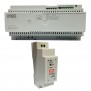 PSTN-Schnittstelle für 2Voice mit Videoausgang. 110/230 Vac Stromversorgung mit mitgeliefertem Netzgerät, 10 DIN-Module. Stromversorgung: 1,5 DIN.