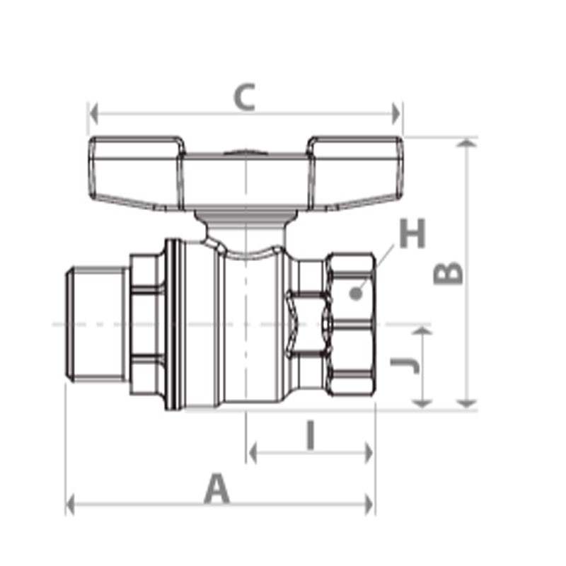 Giacomini Gas-Kugelhahn Abmessungen: G 1/2F x G 1/2M aus vernickeltem Messing, mit Innen- und Außengewinde.
