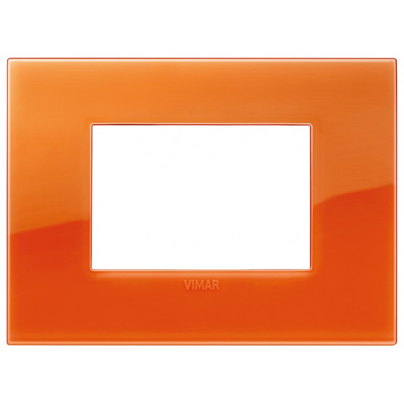 Platte Vimar Arkè Classic 3 Module (Früchte, Orte) Farbe reflex orange. Die Platte wird nur auf dem Träger 19613 montiert. Die Platte wird nicht bei anderen Vimar-Serien installiert, sondern nur bei der Serie Arkè.