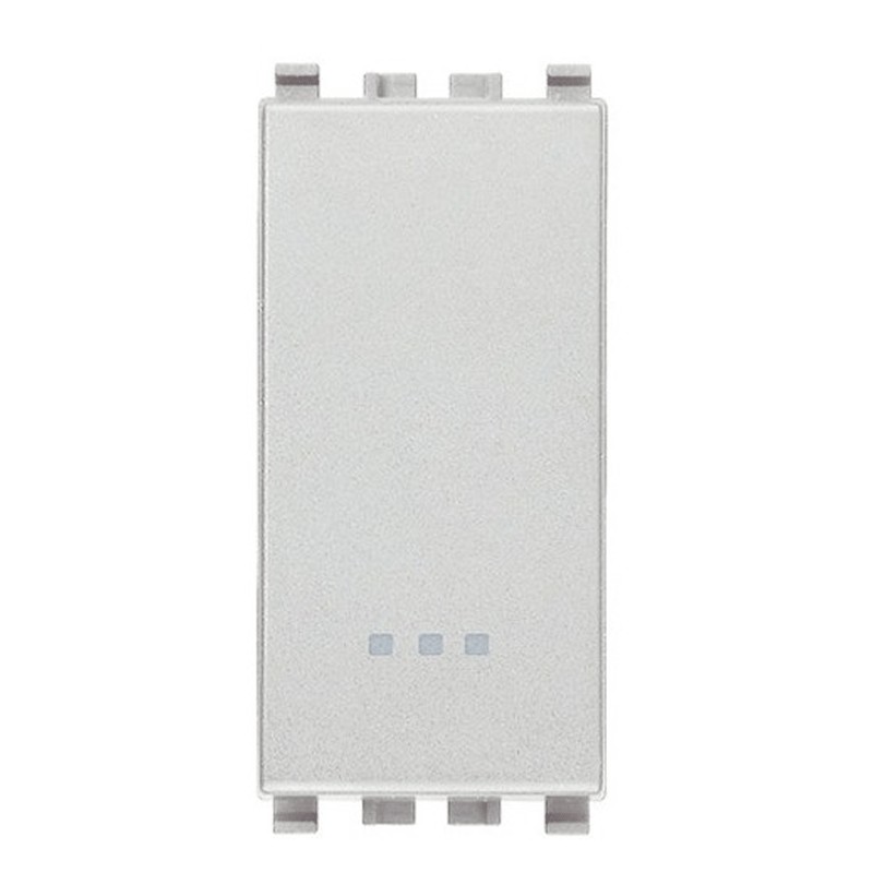 Umsteller 1P Vimar Eikon 16 AX 250 V, 1 Modul beleuchtbar, austauschbarer Taster, Farbe next grey. Max. 200 W für Lampen mit integriertem Vorschaltgerät.