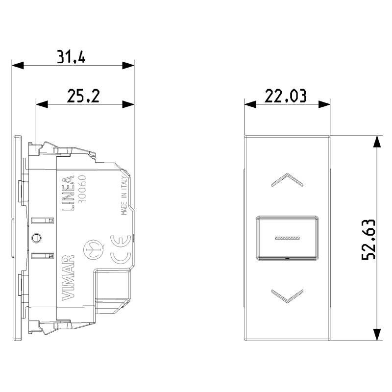 Vimar Linea Schalter mit Richtungspfeilen und zentraler AUS-Stellung: