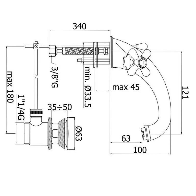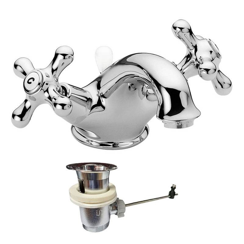 Paffoni Iris Retrò Waschtischarmatur mit automatischem Abfluss verchromt mit folgenden Eigenschaften: