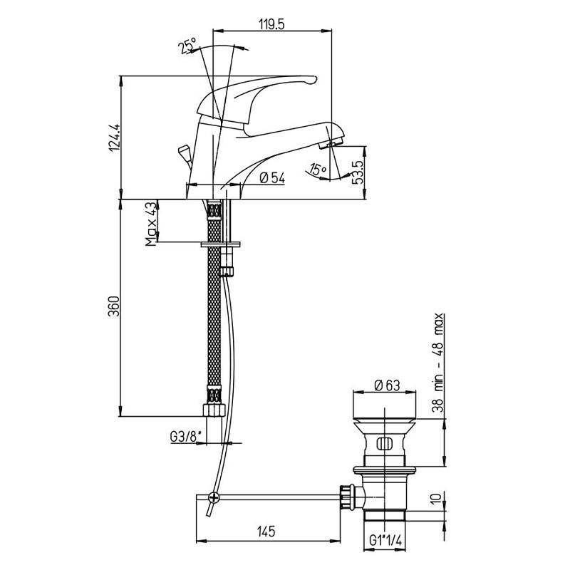 Paini Creta Waschtischarmatur mit automatischem Ablauf 42CR211