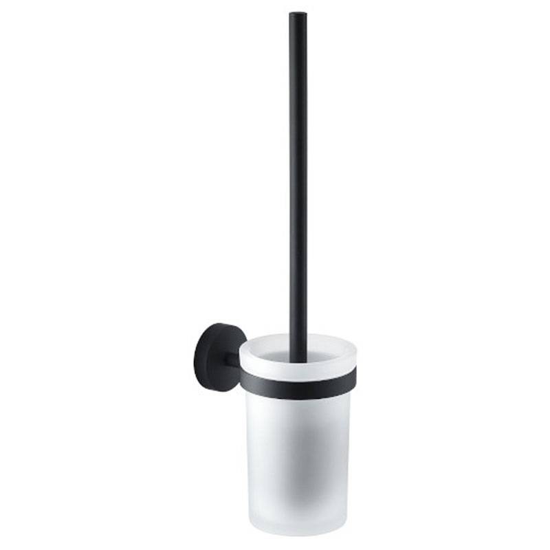 Gedy Eros WC-Bürstenhalter Wandmontage aus Edelstahl und Cromall mit Milchglasbehälter, Farbe mattschwarz, mit Borstenbüschel, Maße 8,5x12x36,6cm.