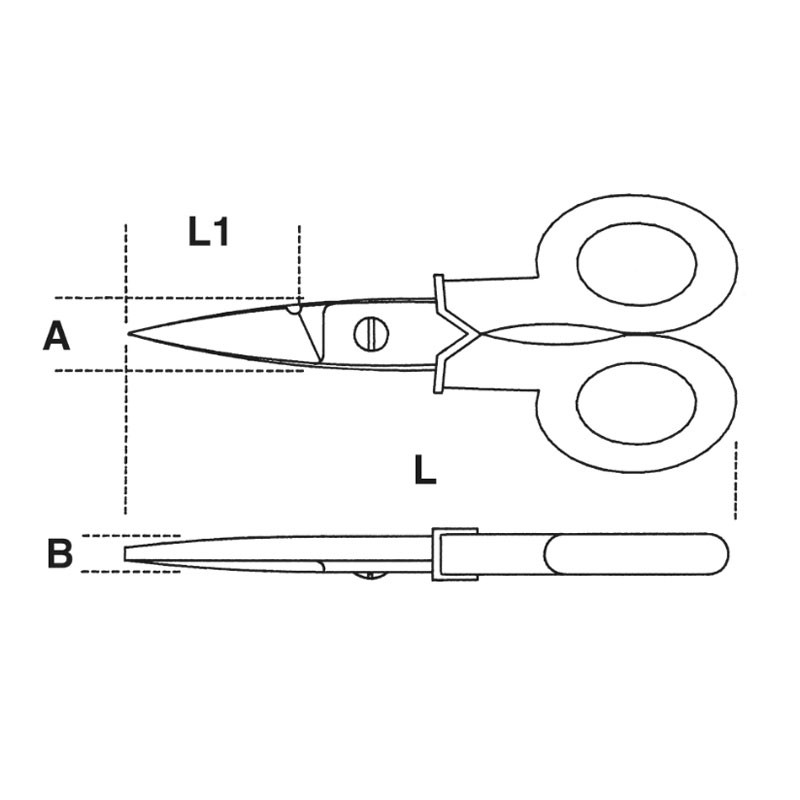 Beta Elektrikerschere mit geraden Klingen aus rostfreiem INOX-Stahl mit Mikroverzahnung an einer Schneide, Drahtschneidekehle.