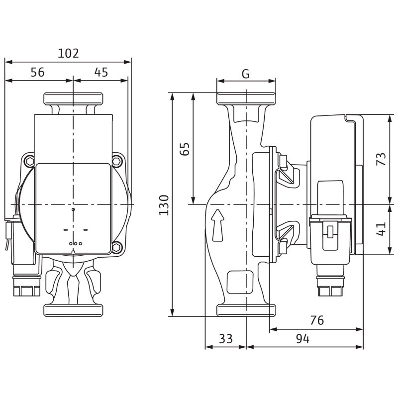 - Umwälzpumpe mit Nassläufer mit Verschraubungsanschluss, selbstgeschütztem EC-Motor und integrierter elektronischer Leistungsregelung.